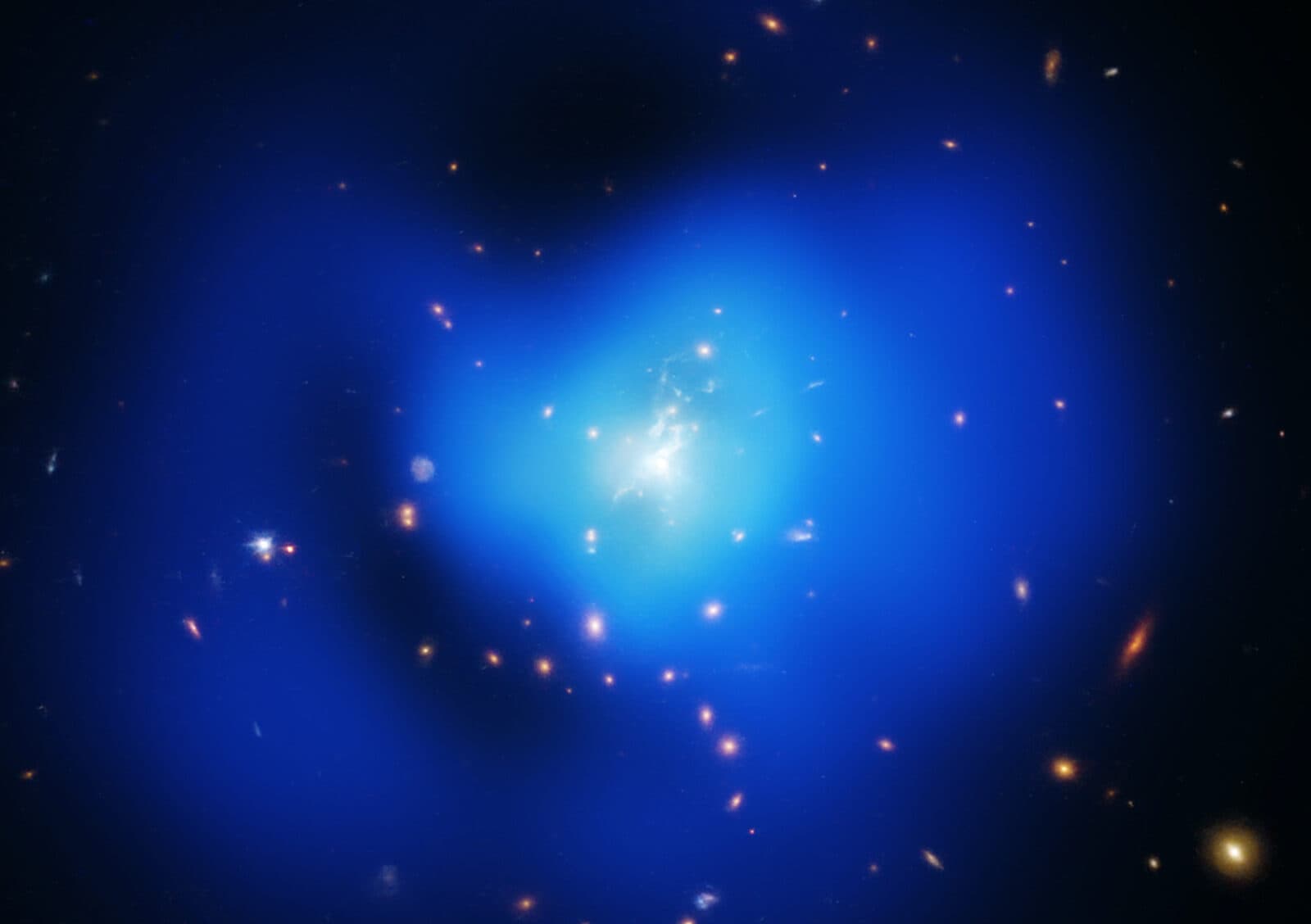 Astronomically speaking, galaxy clusters—great groupings of hundreds or even thousands of galaxies—are a dime a dozen. Yet the Phoenix Cluster is special. For starters, it's among the most massive galaxy clusters on record. It further stands out because its central, colossal galaxy is producing new stars at a breakneck pace. In most clusters, just as with Phoenix, the central galaxy gravitationally gobbles up tremendous amounts of starmaking gas, though in roughly 99% of clusters, that central galaxy does not translate all this mass into new stellar generations. That's because powerful jets hurled out by the supermassive black hole located in clusters' central galaxies prevent most of the gobbled-up gas from cooling down. Somehow, the usual star formation suppression mechanism is not in working order in the Phoenix Cluster.