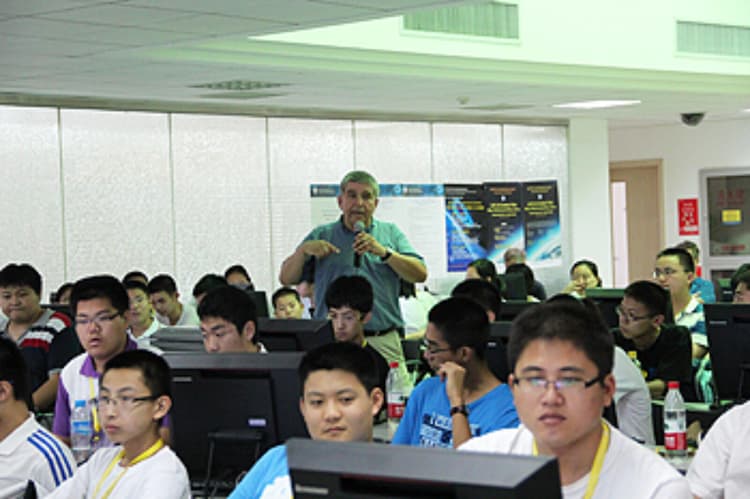There were 70 students and teachers from 13 high schools in Beijing and Jiangsu Province participating in the program, such as the high school affiliated to the Renmin University, the Beijing No. 4 high school, Nanjing Foreign Language School etc. During the two weeks’ activities, the students worked with master teachers from the United States, used the real particle physics hardware and web-based “e-Labs” to study cosmic rays and analyze real data from the CMS Detector at CERN’s Large Hadron Collider. They built up a cosmic ray detector by themselves, got it working and took real data; they joined an international collaboration of high school teachers and students who share data through the e-Lab in a global Cosmic Ray research community and learned about particle physics and then looked for phenomena in recent CMS data. Several public science lectures were given during the outreach by local physicists, such as “From Quarks to Cosmos ” by the director of KITPC, academician Yue-Liang Wu, “Neutrino Physics” by Prof. Miao Li from ITP , “Accelerators and Detectors” by Prof. Wei-Guo Li from IHEP and “Cosmic Ray Physics” by Prof. Zhen Cao from IHEP.
